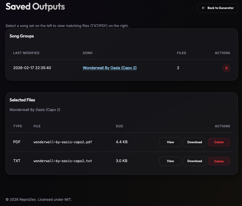 - As a bonus you can also keep the capo at 0 to keep the chords and lyrics unchanged if you're looking to archive some rare music to PDF.