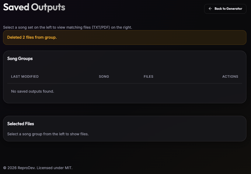 suffixoroverwrite) - Archive view grouped by song set